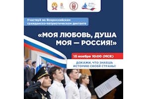 26 мая 2025 г. в Президентской академии подвели итоги III сезона Всероссийского гражданско-патриотического диктанта «Моя любовь, душа моя – Россия!», в котором приняли участие более 19 тысяч студентов из всех 89 регионов страны. Одновременно объявлен старт IV сезона проекта, который в этом году впервые по решению оргкомитета откроет двери для школьников 9–11 классов и лиц старше 35 лет.