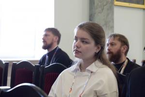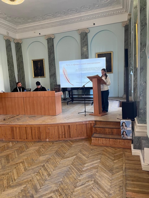 Одним из докладчиком стала Анна Рябова, студентка 3 курса кафедры теологии Московского государственного лингвистического университета с сообщением на тему: «Истории канонизации святого Александра Невского».
