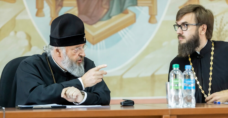 Архиерей, как заведующий кафедрой теологии КемГИК, проверил ход подготовки будущими выпускниками выпускных квалификационных работ. В работе принял участие профессор Кемеровского государственного университета Алексей Владимирович Горбатов.