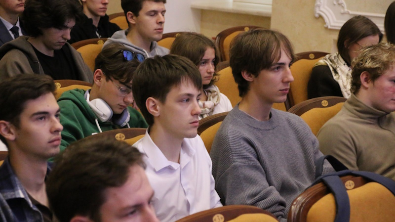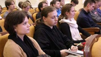 Краевед и публицист Иван Ситников познакомил студентов со своим проектом «Исторические очерки» на ТРК «Канал-16» и показал фильм «Гений» – о выдающемся математике Николае Дмитриеве. Ученый жил и работал в Сарове, но о нем мало знают в силу режима секретности. В детстве Дмитриев был вундеркиндом и получил блестящее образование, но после взрывов американских атомных бомб над Хиросимой и Нагасаки решил свой талант посвятить созданию советской атомной бомбы. Академик Зельдович говорил о нем: «У Коли, может, единственного среди нас, искра Божия». В фильме «Гений» Иван Иванович рассказывает не только об уникальной роли Дмитриева в атомном проекте, но и о нем как о мыслителе, политике и гражданине. Он считал: «Смысл жизни человека заключается в том, чтобы участвовать в работе Бога, участвовать в продолжающемся творении мира». Это был убежденный коммунист, который не отрицал религии. В 1962 году Николай Александрович написал: «Правильно не противопоставлять марксизм и христианство, а считать марксизм христианским течением, притом наиболее близким к первоначальному учению Евангелия». Это был скромный, добрый и нестяжательный человек. В фильме своими воспоминаниями делится его сын Василий Николаевич.