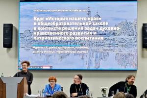 Выступление доктора культурологии, профессора, директора Института образовательных стратегий Ирины Яковлевны Мурзиной было сфокусировано на практической реализации духовно-нравственных задач в школьном курсе краеведения.