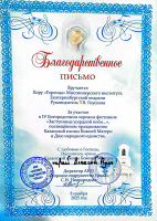 В исполнении коллектива Миссионерского института прозвучали произведения: "Кондак акафиста св. царю и страстотерпцу Николаю" И. Денисовой, "Кондак Богородице" Д. Васяновича, "Мати Божия" П.Чеснокова солистка Елена Синегубова.