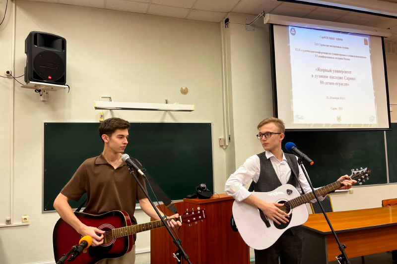 В исполнении студентов СарФТИ НИЯУ МИФИ – Михаила Морозова (АВТ24), Тимура Евтихова (ПМФ24) - прозвучал «Марш физиков» Владимира Высоцкого.