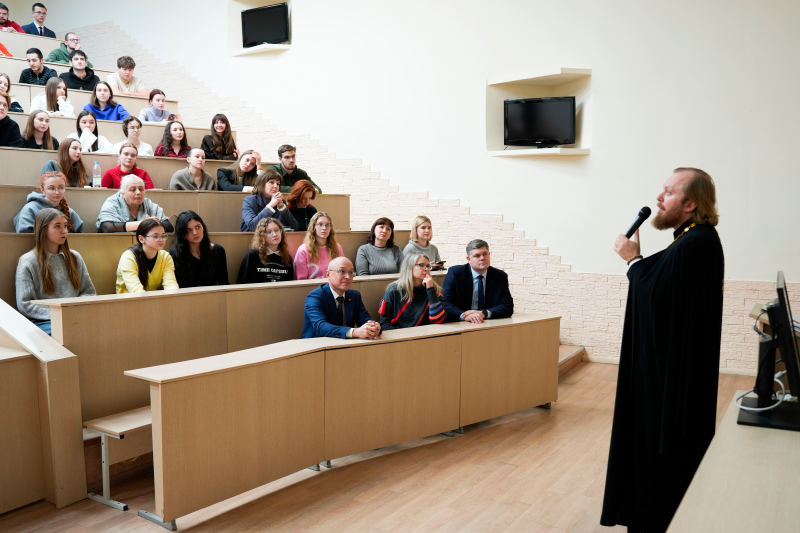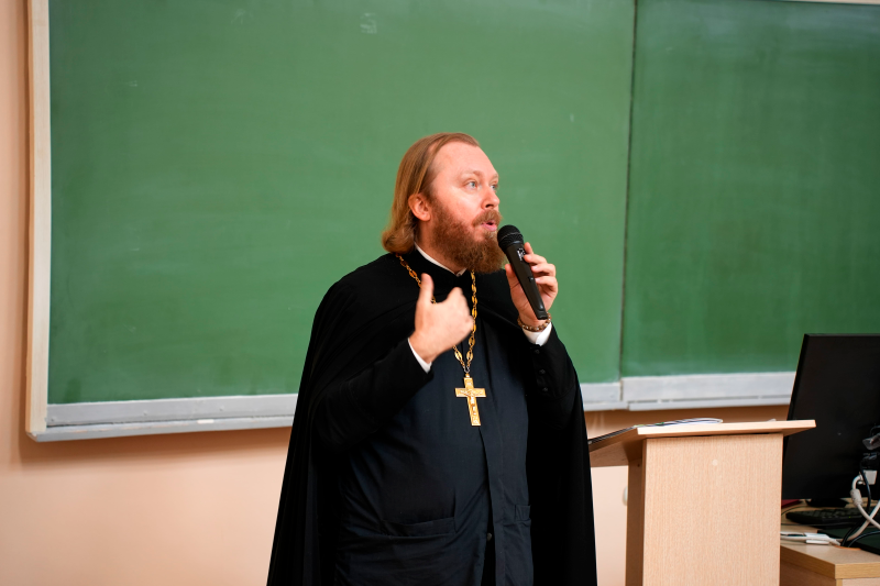 Отец Феодор подчеркнул, что с молодыми людьми необходимо говорить о базовых ценностях, о том, что человек по природе своей — доброе существо, сотворённое по образу и подобию Божьему.
