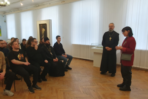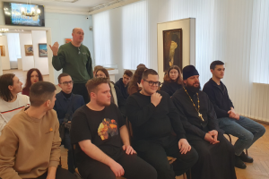 14 февраля 2026 г. заседанием студенческого дискуссионного клуба «Диалог мировоззрений» кафедра теологии, религиоведения и культурных аспектов национальной безопасности ОГУ имени И.С. Тургенева открыла цикл мероприятий, посвященных Году единства народов России. Тему дискуссии - «Онтология мира и войны через призму православной духовности» - определила художественная выставка «Мир и война» орловского живописца, члена Союза художников России, протоиерея Алексея Комова, действующая в Орловском музее изобразительных искусств. Главная задача мероприятия заключалась в обсуждении духовно-нравственных и ценностно-мировоззренческих оснований мира и войны как двух противоположных состояний человеческого существования.