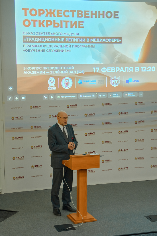 17 февраля состоялось торжественное открытие образовательного модуля «Традиционные религии в медиасфере» в рамках федеральной программы «Обучение служением» в Российской академии народного хозяйства и государственной службы.