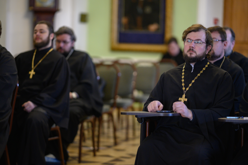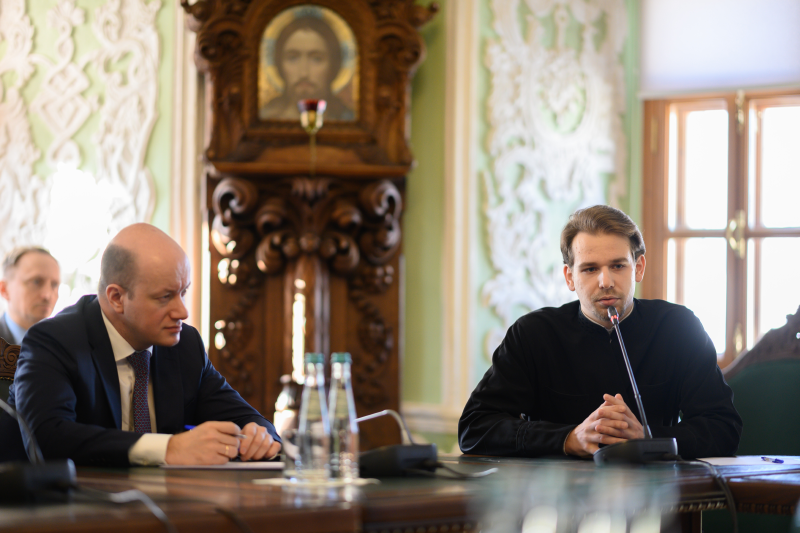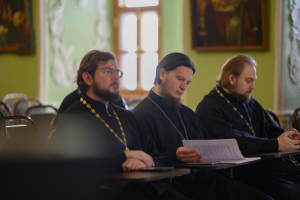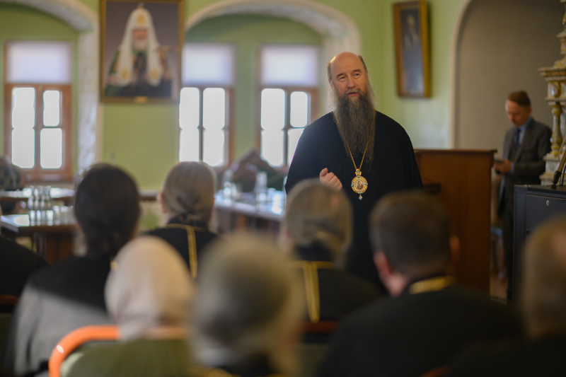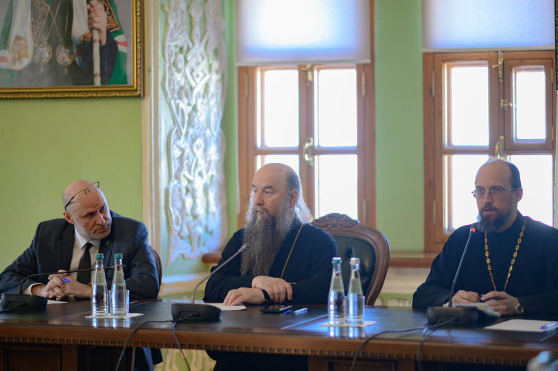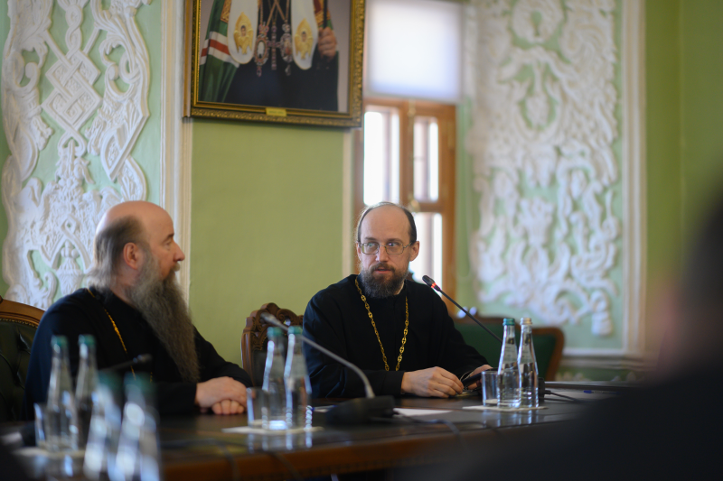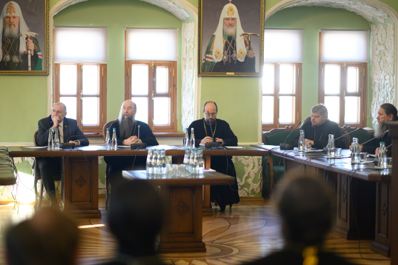 В дискуссии приняли участие руководство Московской духовной академии и ИГСУ Президентской академии, а также благочинные Сергиево-Посадской епархии.