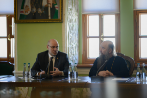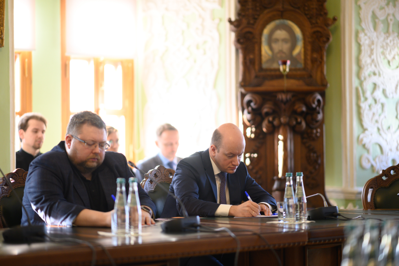 С приветственными словами выступили: епископ Сергиево-Посадский и Дмитровский Кирилл, ректор МДА и Руслан Корчагин — директор ИГСУ Президентской академии.