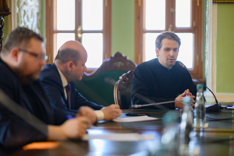 С докладами выступили: Тигран Занко — заместитель директора ИГСУ и иерей Павел Лизгунов — проректор по учебной работе Московской духовной академии.