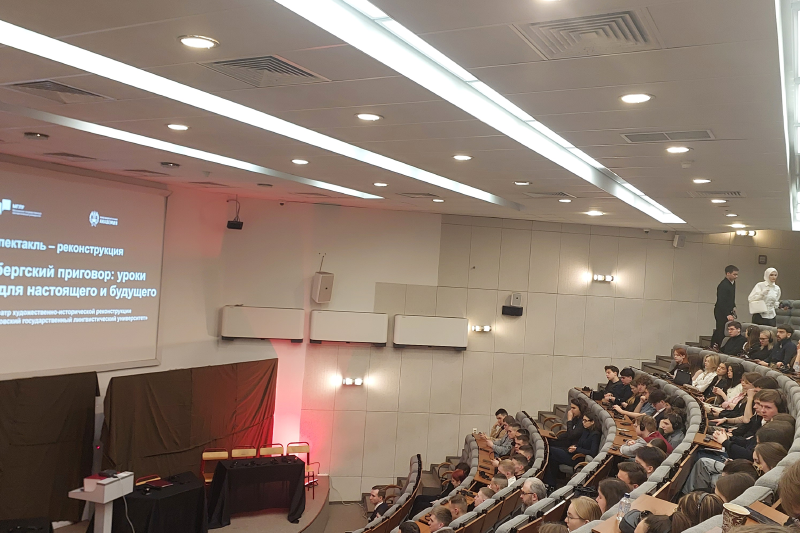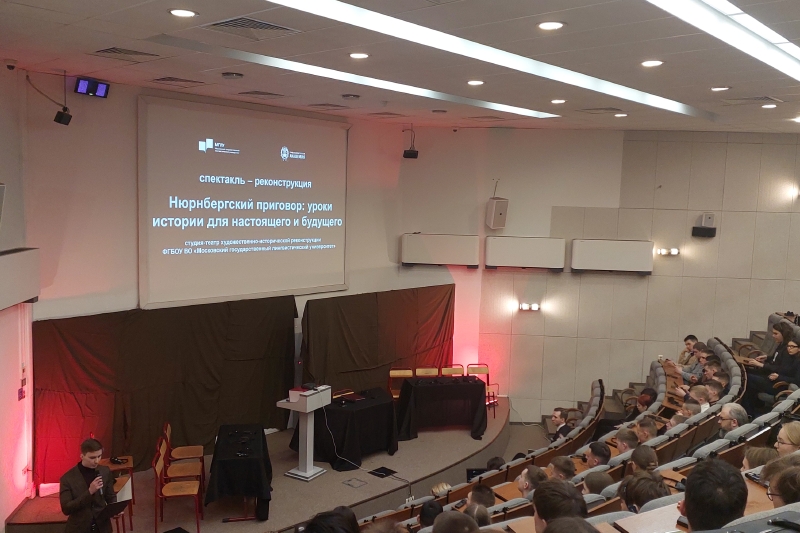 В Президентской академии (РАНХиГС) 27 февраля 2026 года состоялся показ спектакля-реконструкции «Нюрнбергский приговор: уроки истории для настоящего и будущего», подготовленный студентами Московского государственного лингвистического университета (МГЛУ).